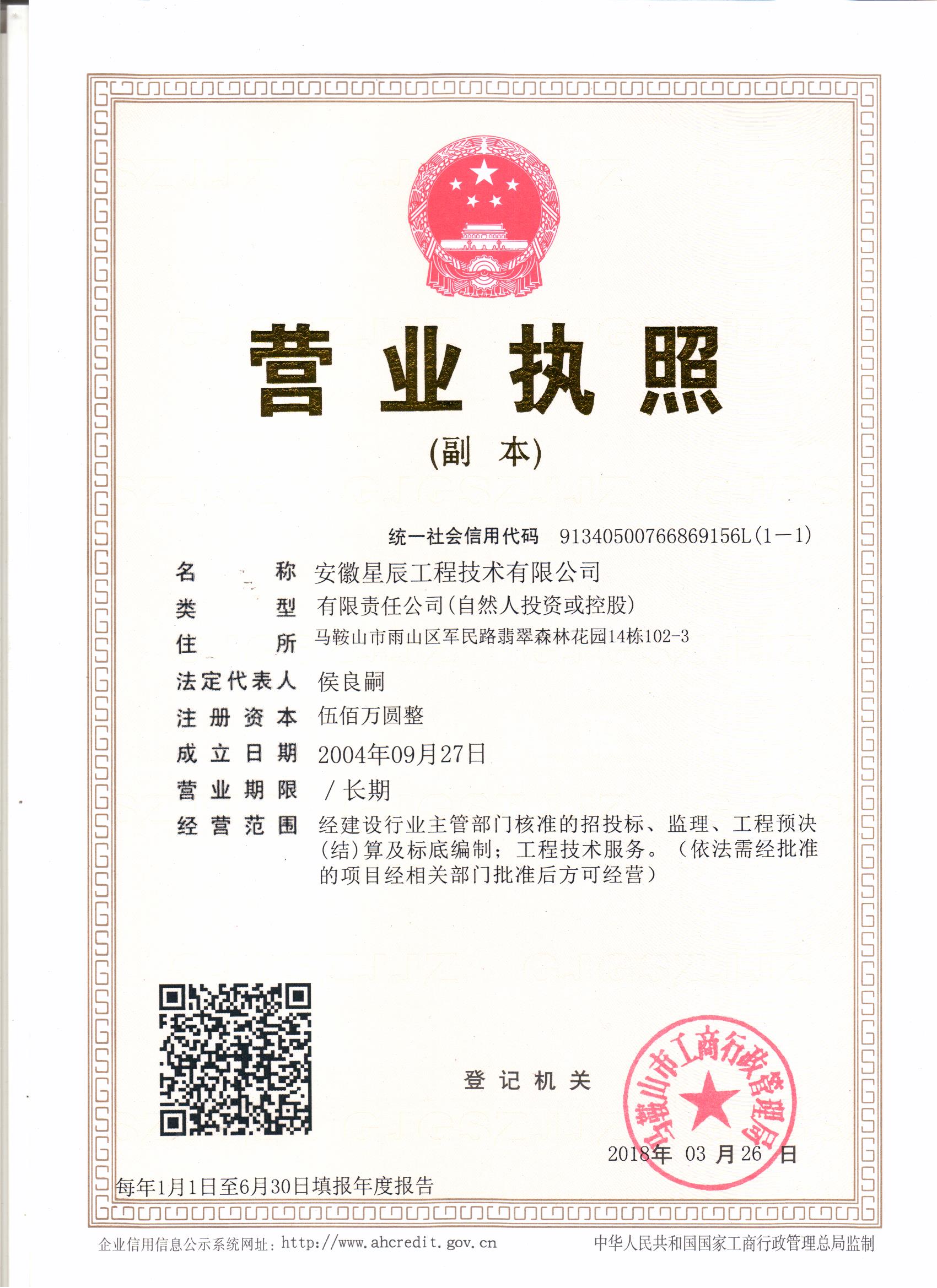 安徽星辰工程技術有限公司于2004年9月成立,現(xiàn)注冊資金為500萬元人民幣,公司注冊地址(辦公地址):安徽省馬鞍山市雨山區(qū)軍民路翡翠森林花園14棟